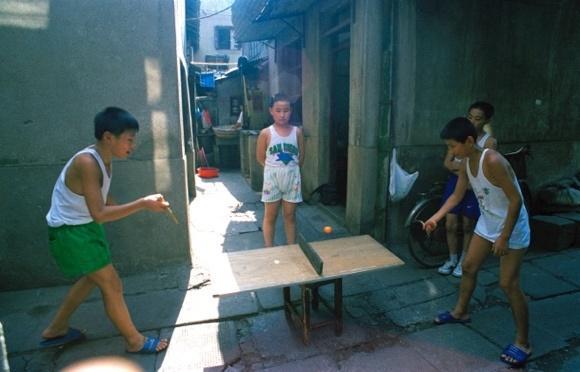 1988年,孩童在临时搭建的简易球台上打乒乓。Ronald C. Modra 图
