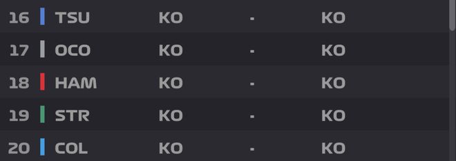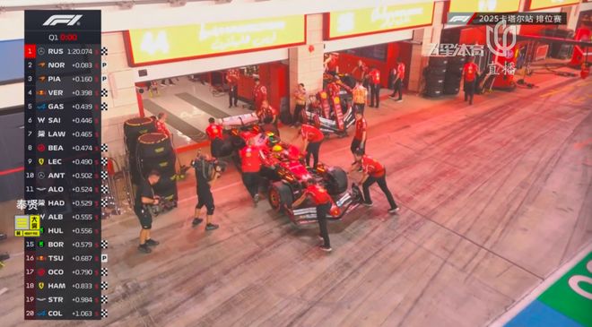 Q1尾声三个争冠的车手先后刷紫,两台法拉利再度出来做成绩,勒克莱尔刷出1:20.564来到第五位,汉密尔顿则没有那么幸运了,他和角田、奥康、斯特罗尔以及克拉平托一起止步Q1。