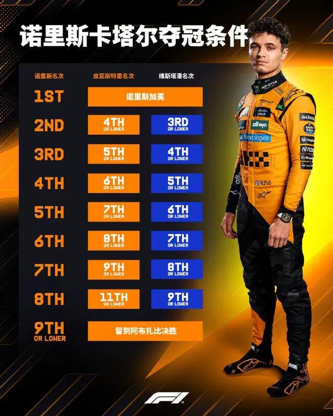 在稍早结束的冲刺赛中,皮亚斯特里拿到冠军,F1官方也是分析了诺里斯在卡塔尔大奖赛的夺冠条件。冲刺赛上已经证明,在罗赛尔赛道只要自己不犯错,后车想要超车是非常困难的。