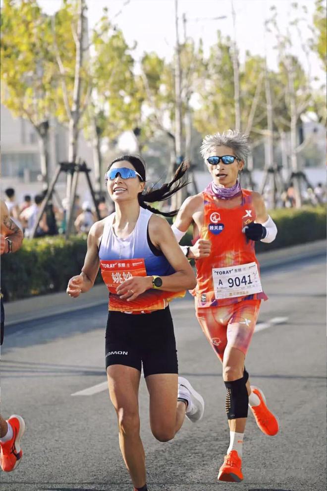 俩人还约定上马的赛道,一起跑。如沈妮赛后回忆,出发前5公里,俩人相伴跑了一段。但后来,姚妙觉得配速有些慢,就加到325自己去跑。毕竟,姚妙赛前的目标是保住国内前三,再冲马拉松PB——2023年合肥马拉松跑出的2:29:30。而沈妮按着自己的节奏,在全运会全力输出一场比赛后,力争跑到231达级即可。