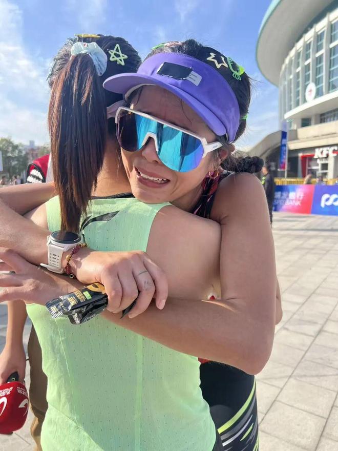2:54:48冲过终点线时,刘娟遇到在杭州认识的跑友汪大玉,扑在她怀里哭起来。时隔1年,把PB提升到255的大玉一边安慰她,一边分析道,“刘娟本身身材和条件都很好,而且这个夏天练得确实辛苦,只是可惜在上马没有发挥出来,所以比较难受。”