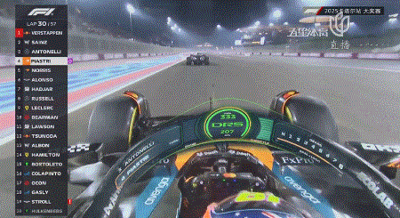 五盏红灯熄灭,卡塔尔大奖赛正式开始!皮亚斯特里的起步相当不错,脏侧起步的诺里斯被维斯塔潘在起步后超越,进入一号弯时已经让维斯塔潘拿到了第二的位置。