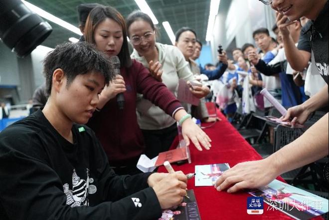 “学生们的水平很高”奥运冠军由衷感叹 友谊赛的余热未消,更激动人心的“一对一连续对打挑战”随即开始。10名经过选拔的学生依次上场,每人争取与黄东萍进行尽可能多的回合对打。同学们面对奥运冠军,既紧张又兴奋,纷纷全力以赴,挑战自我极限。场上羽毛球飞舞,奔跑、救球、回击的身影展现出红岭学子良好的体育素养和拼搏精神。现场掌声、加油声此起彼伏,气氛达到顶峰。 正是这连续十轮的“车轮战”,让黄东萍对红岭中学的羽毛球水平有了最直接的体会。活动后在接受简短采访时,她感慨道:“一开始我觉得没关系很轻松,但一人一个球打下来,我觉得真的不轻松,挺累的。”她进一步分析道:“学生们的水平很高,说明他们一周至少会打个两次到三次的球。这对于现在的中学生来说,能做到这样,说明学校整体的学习氛围,包括运动氛围是非常好的。” 黄东萍的这句感叹,是对红岭中学坚持“体教融合”的成果的“点赞”。据了解,红岭中学拥有完善的体育设施和浓厚的运动文化,为学生参与体育锻炼提供了优越条件。 传承展望:让体育与公益照亮青春 一场活动,一次相遇,一份传承。黄东萍的此次红岭之行,远不止于一场“明星”见面会。她通过公益基金的设立,为教育注入了爱的力量;通过零距离的互动和高水平的切磋,将奥运冠军的拼搏精神、体育的无限魅力以及对于运动的真诚热爱,毫无保留地传递给了在场的每一位师生。 她在谈及支持校园体育的方式时表示:“像今天这样的进校园活动,能激发学生们与体育运动更近距离的接触……让学生们觉得(冠军)是可以触碰到的东西,他们就会越来越感兴趣,越来越向往。”这正揭示了体育偶像深入校园的深远意义——拉近梦想,播种希望。
