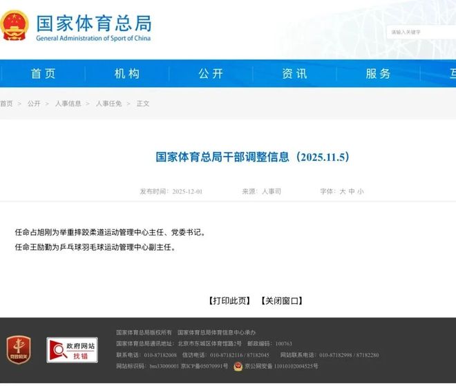从许昕到樊振东,每一次国际大赛,走向管理岗位的王励勤,一直亲自率队做好后勤保障工作,成为球员们最坚实可靠的后盾。 文|王仲昀 12月1日,国家体育总局在其官网公布了干部调整信息,任命王励勤为乒乓球羽毛球运动管理中心副主任。 今年4月,中国乒乓球协会届中调整,王励勤已当选中国乒协主席。在外界看来,此番履新意味着王励勤已是洛杉矶奥运新周期中国乒乓球项目的“掌舵者”。