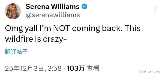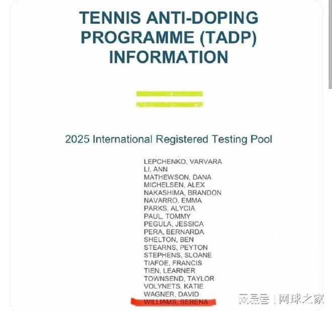 近日,外媒发现美国前网球职业选手塞蕾娜·威廉姆斯的名字突然出现在了ITIA公布的网球反兴奋剂检测名单之中,要知道这是参加正式比赛的必要条件。一时间,关于小威要在2026赛季重返职业网坛的消息传得沸沸扬扬。