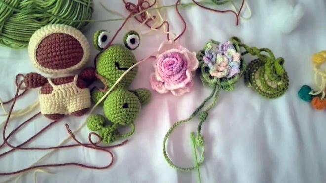 我还有一个爱好——钩针。最开始是冬训跟顺子姐学的。我给我姐钩过一件衣服,慢慢就喜欢上了。当然,我“师傅”顺子手艺比我好太多了。有空时,我喜欢窝在家里,一边钩点小东西,一边看电视剧或综艺,特别解压,特别有成就感。