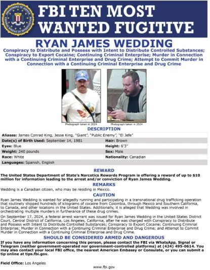 如今,韦丁的通缉令贴满了美国驻外使领馆,FBI官网的"十大通缉要犯"页面上,他的照片赫然在列。美国司法部长Pam Bondi在记者会上强硬表态:"无论是街头毒贩,还是国际贩毒头目——我们都会找到你。"除了针对韦丁的1500万美元悬赏,美国政府还对参与谋杀证人的其他嫌疑人提供最高200万美元奖励。