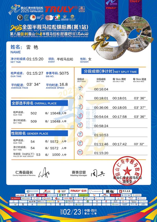 今年仁寿半马,雷艳以115完赛 新的一年,她计划路野兼修 左滑查看更多