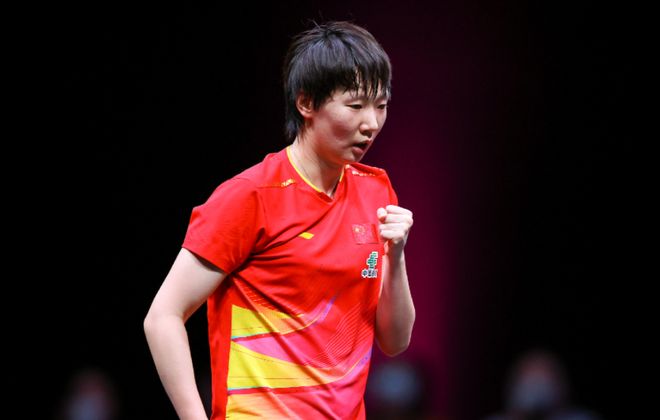 韩莹10比3拿到第五局的局点。王曼昱拯救一个局点,但是韩莹一个擦网球得分,11比4胜出,大比分3比2领先。