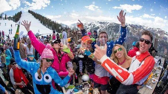 (扎克伯格夫妇也是滑雪爱好者) 比这更扭曲的,是这些滑雪胜地里刚刚冒头的“派对文化”。 只要踏进阿斯彭著名的“云九”酒吧就能体会到了。空气中喷洒的香槟,站在桌子上扭动的躯体,头顶震耳欲聋的音乐……这些人根本就不是来滑雪的,他们只是在找一个尽情放纵的场合。