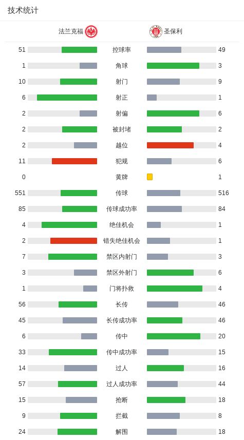 第35分钟,法兰克福球员伯卡特打入一球。 第55分钟,法兰克福球员沙伊比助攻伯卡特打入一球。 技术统计