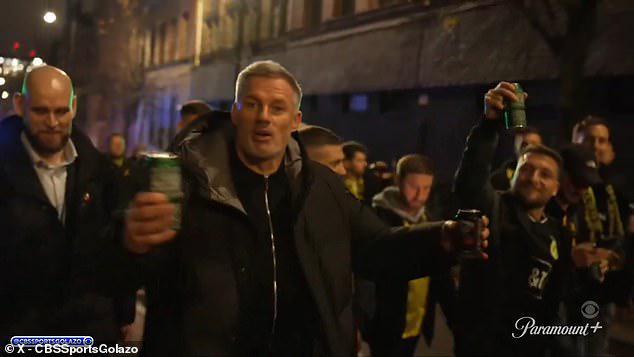卡拉格未能如愿在欧冠比赛中与多特蒙德球迷一同坐在客队看台 在行进过程中,卡拉格接过了一条多特蒙德围巾,并参与了一些球迷歌曲的合唱。他还接过啤酒喝,并在某一刻高举了一个黄色信号弹。 “这太棒了,”他后来向CBS同事凯特-阿博多、理查兹和亨利解释道,“我们从曼彻斯特市中心一路走到球场,非常愉快。 “他们玩得很开心,也很期待比赛,只是对哈兰德有点担忧。 “但他们也有自己的前锋(塞霍·吉拉西),我们认为他可能会制造一些麻烦。 “他们现在士气高涨,希望比赛结束后他们会真正享受这场比赛,也许我会加入他们的庆祝。” 然而,曼城以4-1轻松取胜后,并没有赛后庆祝活动。 此前,在德国被CBS派入看台观赛时,卡拉格透露自己喝了八品脱酒后出现了宿醉症状。
