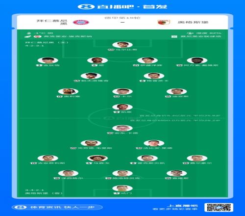 拜仁vs奥格斯堡首发:戴维斯、迪亚斯先发,基米希、穆西亚拉替补