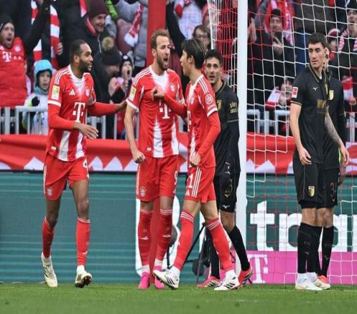 考虑到赛程密集,拜仁进行小幅度轮换,本场比赛凯恩继续领衔4231阵型,奥利塞、路易斯-迪亚斯和伦纳特-卡尔出战,格雷茨卡和帕夫洛维奇搭档后腰,阿方索-戴维斯伤愈后首次先发,乌尔比希则取代诺伊尔镇守球门,穆西亚拉和基米希替补席待命。 比赛开打之后,双方节奏偏慢,场面一度陷入沉闷的氛围当中。