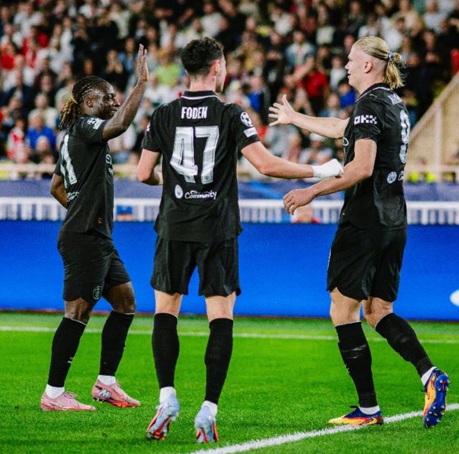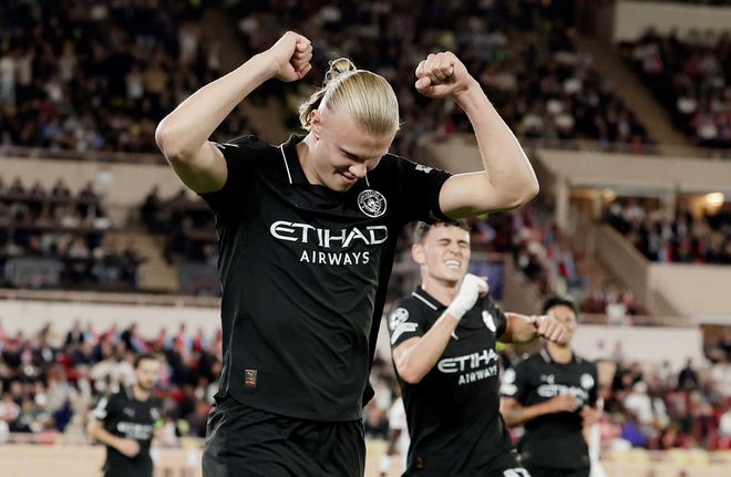 哈兰德梅开二度,一战造2大神迹!摩纳哥点球绝平,主场22曼城