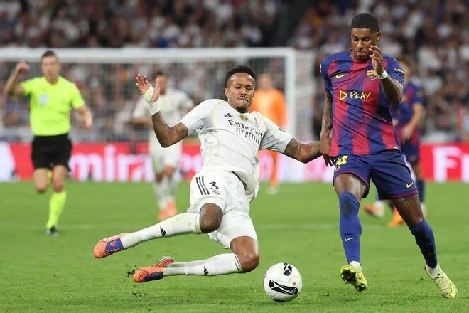 穿上巴萨球衣的拉什福德迎来了自己的首场国家德比。尽管最终巴萨1-2不敌皇马,但他在关键时刻挺身而出,成为巴萨进攻端最具威胁的人物。 对于任何一支球队来说,做客伯纳乌都是巨大挑战,而对于拉什福德而言,这场国家德比的意义更为特殊——这不仅是他第一次亲历这场世纪对决,而且就在此前,他在欧冠对阵奥林匹亚科斯的比赛中表现出色,赛后也曾表示自己“非常期待首次国家德比”。
