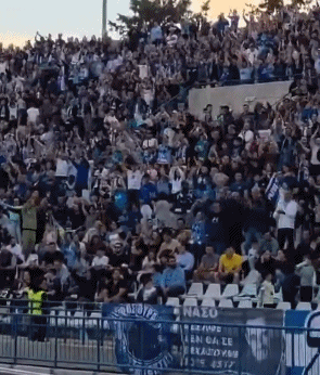 这是帕福斯的角球,塞马送出传中,卢卡森头球攻门得手,帕福斯1-0领先! 卢卡森头球破门,Alphamega球场的6314名观众沸腾!1-0赢球,帕福斯球迷集体起立,有节奏地鼓掌、摇旗呐喊,庆祝史诗级的欧冠胜利。