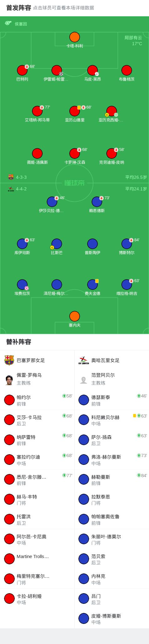 巴萨女足30大胜继续领跑女足欧冠,普特利亚斯点射破门
