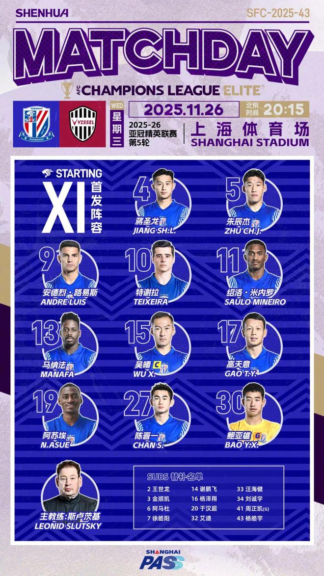 11月26日,2025-26赛季亚冠精英联赛东亚区第5轮,上海申花队坐镇主场迎战神户胜利船。在本场比赛中,申花队3球被吹,路易斯点射被扑,最终0-2不敌神户胜利船。 上海申花 亚冠精英联赛 东亚区 0 - 2 神户胜利船 本场比赛,主教练斯卢茨基派出了鲍亚雄、蒋圣龙、朱辰杰、陈晋一、特谢拉、马纳法、吴曦、高天意、安德烈·路易斯、绍洛·米内罗、阿苏埃组成的首发阵容。 比赛开始后,上海申花队展现出了很强的进攻欲望,比赛第9分钟阿苏埃传中制造威胁,路易斯中路包抄,被权田修一干扰。比赛第11分钟,门前的混战中,路易斯头球攻门被对方解围。比赛第15分钟,阿苏埃内切起脚远射,可惜皮球砸中横梁后弹出。 31’ 井手口阳介 捅射破门 比赛第31分钟,神户胜利船右路空档接球后,送出横传,中路包抄队员跟上捅射破门!随后边裁举旗,示意越位。但主裁在和VAR裁判沟通过后,认定进球有效。 39’ 山川哲史 头球蹭射破门 比赛第39分钟,神户胜利船开出战术角球,山川哲史接队友饭野七圣传中,背身头球蹭射入网。上海申花0-2落后。 下半场易边再战,上海申花队率先做出换人调整,换下阿苏埃,换上阿马杜。 比赛第51分钟,申花队前场断球,特谢拉在右路横敲中路,路易斯抢点破门,可惜边裁举旗!路易斯越位。 比赛第66分钟,鲍亚雄将球击出,申花队球员将球断下并送出长传,米内罗单刀赴会,将球打进!不过主裁判在回看VAR后,判定米内罗在接球前有犯规动作,进球无效。 比赛第80分钟,路易斯在禁区内被拉倒,主裁判果断判罚点球。不过,路易斯随后的点射力量过小,对方门将判断对了方向将球扑出。 全场伤停补时阶段,吴曦完成断球,挑传给到路易斯,路易斯获得单刀机会,一脚挑射破门!但可惜这球仍然因为路易斯越位被吹。 最终,上海申花队在主场0-2不敌神户胜利船。 |