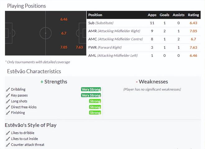 在切尔西他本赛季也已经有4球1助攻入账,18岁的埃斯特旺虽然绝对速度和爆发力并不算突出,力量和体重也是劣势,不过他双足都能处理球,同时球商也高,使得他可以弥补自己很多的不足。 当前最大缺陷还是太靠外线,也是为了减少对抗,这会是限制他更上一层楼的关键。毕竟他未来想要成为进攻的主导者,就要更多迎着防守强度发起攻击,但他当前并不具备1对2攻击的能力,更多还是靠灵巧和变向来打对手一个出其不意,靠着双足和动作频率来取胜。