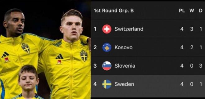 北京时间10月14日凌晨,欧洲区世预赛,瑞典爆冷0-1不敌科索沃。4轮比赛结束后,瑞典队1胜3负,1分垫底,已经确定无缘小组头名,无法直接晋级世界杯决赛圈。 瑞典队的阵容实际上是非常强大的,队内拥有2位今夏转会费上亿的前锋,分别是伊萨克和约克雷斯。此外,依兰加、斯文松、贝里瓦尔、古德蒙德森等人也都有不俗的实力。 瑞典队目前世界排名32位,而今日对手科索沃则是第91名,只比国足高了3名。此外,瑞典全队身价接近5亿欧(4.6亿欧),而科索沃则是1亿欧。看样子,瑞典队可以轻松拿下胜利。 但是,比赛的过程让人大跌眼镜。瑞典队控球率高达68%,射门13次,4次射正,这三个数据都高于对手。瑞典队的进攻效率太差,始终无法破门。反观科索沃,只有32%的控球率,却在第32分钟由阿斯拉尼一击致命。 瑞典的2大亿元神锋此役全部拉胯,两人均首发并打满全场,但伊萨克6次射门2次射正,错失1次机会,约克雷斯则是2次射门1次射正,多项数据挂零。两人赛后的评分是7.3分、6.8分。 4轮比赛结束后,瑞典队一场没赢,只拿到1个积分,小组垫底,落后第1名瑞士9分,落后第2名科索沃6分,落后第3名斯洛文尼亚2分。目前,瑞典已经确定无缘小组第1,无法直接晋级世界杯。 最近3轮比赛,瑞典都无法破门,遭遇3连败,这简直是个天大的讽刺。而在看了伊萨克和约克雷斯的低迷表现后,英超两大豪门利物浦和阿森纳是否会后悔今夏为他俩砸下天价的转会费? |