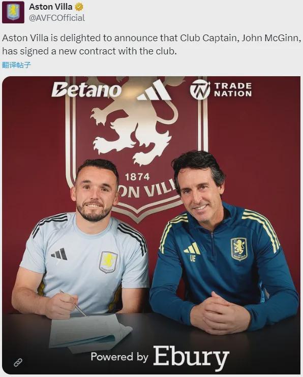 官方:维拉宣布续约队长约翰-麦克金,新合同2028年到期。