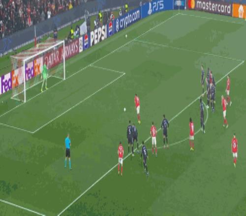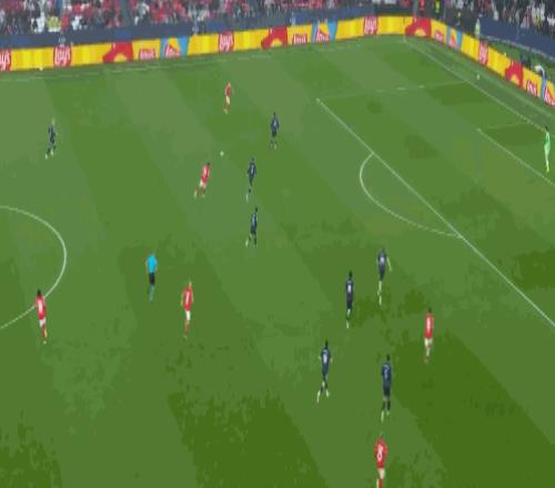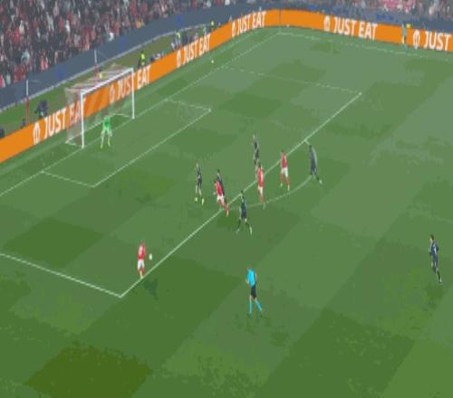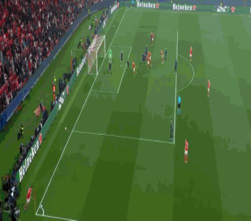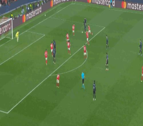 第76分钟,居莱尔劲射,本菲卡门将将球扑出