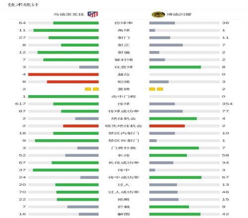 北京时间1月29日欧洲冠军联赛 联赛阶段 第8轮,马德里竞技对阵博德闪耀。上半场巴埃纳越位在先,头球破门被吹无效,之后汉茨科送出助攻,瑟洛特抢点头球破门先拔头筹,布约尔坎助攻舍沃尔德破门将比分扳平。下半场卡斯帕-霍门前混战中抢射破门将比分逆转。随即全场战罢,最终比分马竞 1-2 博德闪耀。