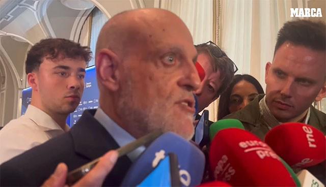 原因有很多,不止两三个,比这多多了。整个过程很复杂,我们联系了欧足联,他们勉强同意……欧盟委员会专员也同意了。涉及的因素很多,皇马球员只会说“有黑幕”(adulterada)、“有黑幕”、“有黑幕”。我听到库尔图瓦说的话了,和何塞-安赫尔-桑切斯(皇马总经理)说的差不多。皇马球员当然会这样说,如果他们敢唱反调……