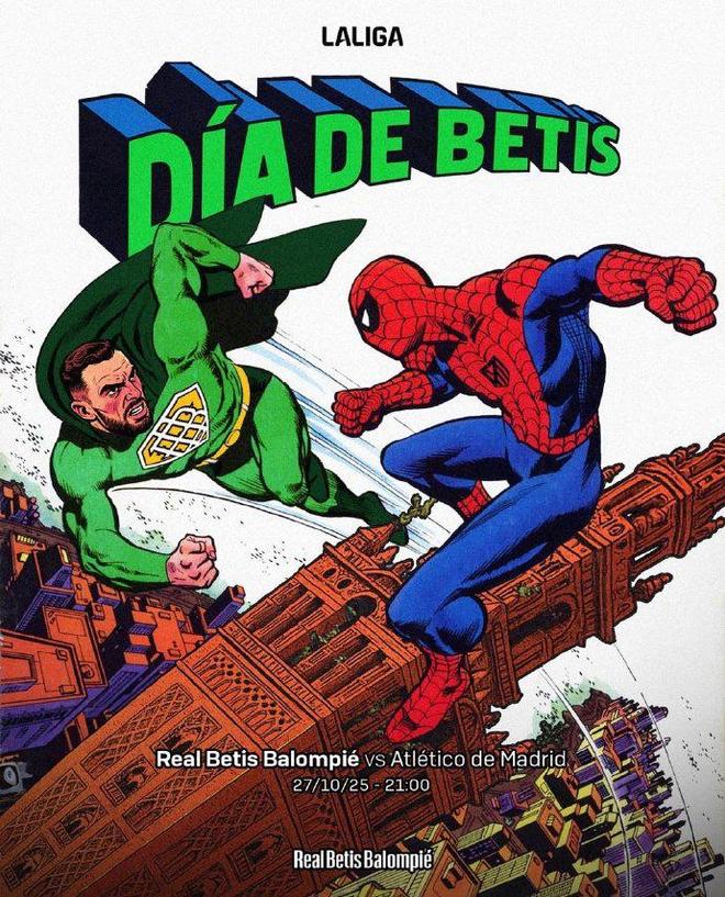 雷速体育10月27日讯 今晚凌晨西甲联赛第10轮,贝蒂斯主场迎战马德里竞技。 西甲官方发布两队赛前海报,其中蜘蛛侠大战绿灯侠。 |