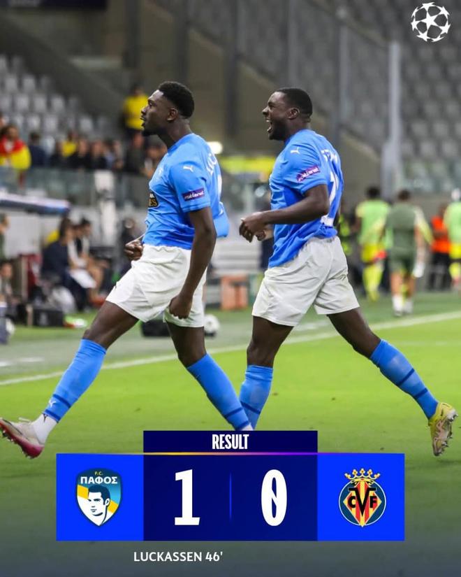 此役最大的功臣则是卢卡森,他打入了全场唯一进球。历史时刻发生在比赛第47分钟,帕福斯赢得角球机会。塞马踢出一记弧度极佳的传中进入比利亚雷亚尔禁区,埋伏在后点的卢卡森,高高跃起力压防守队员头槌破门,帕福斯1-0比利亚雷亚尔,主场6314名现场观众瞬间沸腾了,最终凭借着这一粒历诗般的进球,拿下了队史首场欧冠胜利。