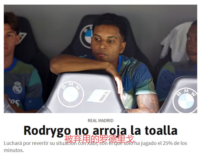阿隆索似乎并不喜欢罗德里戈。《阿斯报》指出,在2个月,罗德里戈和维尼修斯竞争左边锋,最近,罗德里戈也经常踢右边锋。不过,阿隆索给罗德里戈的时间极为有限,最近3场西甲都只有12-18分钟。德转身价8000万欧元的罗德里戈,沦为皇马的铁板凳。