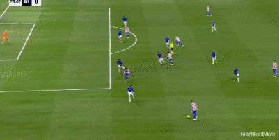 10分钟后,马竞又是前场左侧发起进攻,格列兹曼,巴埃纳配合后斜塞左侧,汉茨科接球又是45度角兜传门前,卡尔莫和索尔洛特抢到一块,卡尔莫解围没有踢出去,索尔洛特抢到第2落点,小禁区内直接小角度转身凌空扫射,皮球击地后弹入网窝,索尔洛特梅开二度,马竞2:0领先。第29分钟,马竞前场右侧大范围转移到左侧,索尔洛特禁区内一步抢点疑似被维达尔从身后推倒,只是主裁没有吹罚点球。