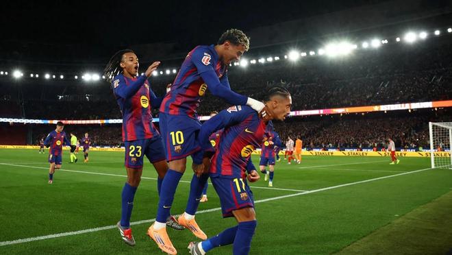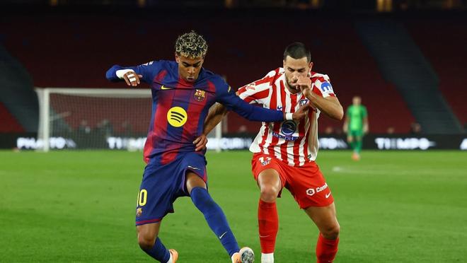 在12月3日凌晨结束的西甲第19轮焦点战中(因西班牙超级杯提前进行),巴塞罗那坐镇诺坎普球场以3比1击败马德里竞技,继续稳居联赛榜首。 此役过后,巴萨在多赛一场的情况下领先少赛一轮的皇家马德里4分,同时终结了马竞各项赛事连续7场不败的强势势头。 比赛从一开始就节奏紧凑、攻防转换迅速。开场阶段,双方均创造出有威胁的机会:拉菲尼亚率先尝试远射,但皮球高出横梁;而客队马竞则凭借边路新星亚历克斯·巴埃纳的活跃表现频频冲击巴萨防线。第19分钟,巴埃纳从中场带球推进后冷静施射,为马竞首开纪录。 然而,马竞的领先优势仅维持了7分钟。第26分钟,拉菲尼亚抓住对方五后卫体系中稍纵即逝的空当,低射破门,将比分扳为1比1。