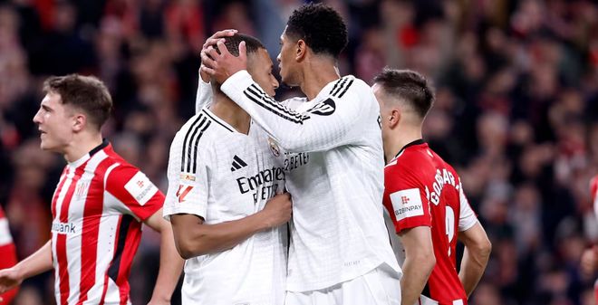 北京时间12月4日凌晨2点,西甲第19轮焦点战,皇马客场挑战毕尔巴鄂竞技。 客场挑战毕尔巴鄂竞技,皇马已无退路,唯有赢球,才能继续紧追巴萨。 一旦输球,可能是灾难性后果:西甲4场不胜,被巴萨甩开4分,排名可能跌至第3,皇马对阿隆索的信任,也会降至冰点。 两队历史交锋188场,皇马99胜37平52负。若名日取胜,皇马将达成对宿敌的百胜纪录。 历史就是这样的巧合! 去年12月4日,皇马一哥姆巴佩在毕尔巴鄂经历了职业生涯的谷底。 当时,皇马在圣马梅斯球场以0-1落后,他在下半场罚丢关键点球,成为球队失利的悲情主角。 那记射门既缺乏力量又角度平平,对毕尔巴鄂门将阿吉雷萨瓦拉而言如同轻松接住的糖果。 而在一周前,姆巴佩还在安菲尔德对阵利物浦时射失点球,连续失误让球员陷入舆论漩涡中。 20天后,姆巴佩直面镜头坦言:“我能做得更好。我知道自己双腿还蕴藏着更多能量。毕尔巴鄂之战让我清醒——罚失点球如同触底反弹的契机,我意识到必须为这件球衣倾尽所有,踢出属于自己的足球……” 2024年的圣马梅斯之夜成为了分水岭。 冰冷的数据揭示着彻底转变:此前20场比赛中,姆巴佩仅打入10球(当时连维尼修斯12球都多于他),场均进球加助攻贡献仅0.64。 而此后真正的姆巴佩终于爆发,从圣马梅斯之战算起,他在58场正式比赛他轰入57球,场均接近1球的效率堪称恐怖! 这些数据甚至超过贝林厄姆(15球)、维尼休斯(15球)、罗德里戈(11球)、巴尔韦德(7球)和 居莱尔(7球)五人总和!