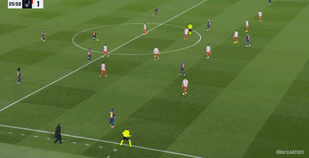 巴萨在国家德比输给皇马后,在联赛中犹如无敌一般连战连胜,上周末击败阿拉维斯后已经夺取4连胜;马竞在首轮输给西班牙人后,则是保持了13轮不败。今天的强强对话,开场后双方都很快进入状态,第3分钟,巴萨中后场快速反击,亚马尔外脚背精妙斜塞,拉菲尼亚左侧插上慢了半拍,错失绝佳机会。第18分钟,马竞中后场快速反击,莫利纳送出精妙的超远距离过顶兜传,巴埃纳反越位成功高速插上将球卸下,随后巴埃纳突入禁区获得单刀良机,面对出击的门将加西亚,巴埃纳冷静挑射得手,马竞1:0首开纪录。