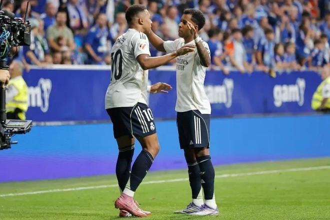 这场比赛,姆巴佩首发出战78分钟完成了2射1传的好戏。这也让他在皇马的总进球数达到了69粒外加9次助攻,完成这个数据,法国巨星只用了79场比赛,总出场时间6493分钟。也正是这个梅开二度,让姆巴佩在皇马的总进球数超过了罗德里戈的68粒。而后者打进68球,所花费的场次是286场,总时间更是高达16599分钟,比姆巴佩多用了足足10106分钟。 换句话说,当姆巴佩摧城拔寨成为皇马最耀眼球星的同时,罗德里戈则正在经历他皇马甚至整个职业生涯的最黑暗时刻。31场的进球荒不仅创造了皇马队史纪录,也给罗德里戈带来了巨大的压力。曾经的活力满满一往无前变成了畏畏缩缩,自信心更是碎了一地。在姆巴佩进球如麻的映衬下,罗德里戈的存在感几乎荡然无存。 曾几何时,罗德里戈与维尼修斯是皇马当之无愧的锋线双子星,在西甲和欧冠赛场上扬名立万。2021/22赛季欧冠半决赛次回合,当比赛进行到第89分钟的时候,皇马依然总比分3-5落后。关键时刻,罗德里戈横空出世,他先是接本泽马助攻包抄射门打进1球,又在伤停补时第1分钟与阿森西奥完成头球接力,89秒钟上演梅开二度的好戏。最终在加时赛中,本泽马点球一脚定乾坤,帮助皇马完成了惊天大逆转。而罗德里戈的梅开二度,则成为曼城心中永远的痛。