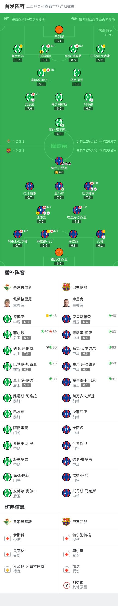 剑南春巴萨53贝蒂斯迎西甲6连胜,费兰戴帽,亚马尔点射