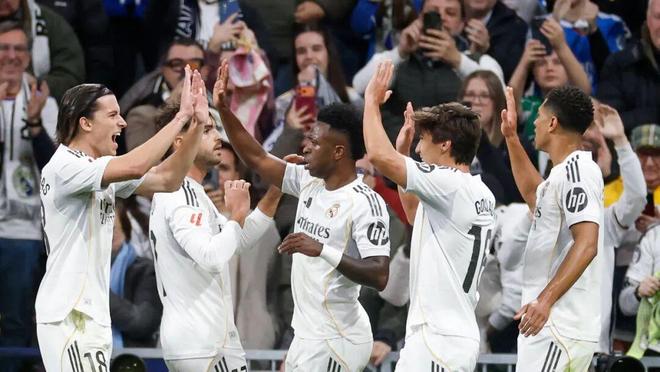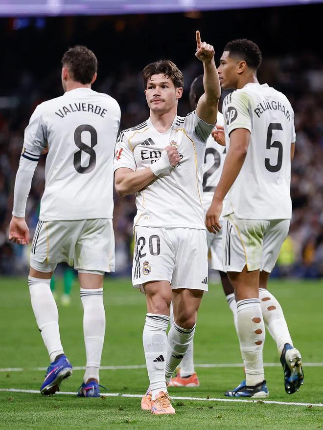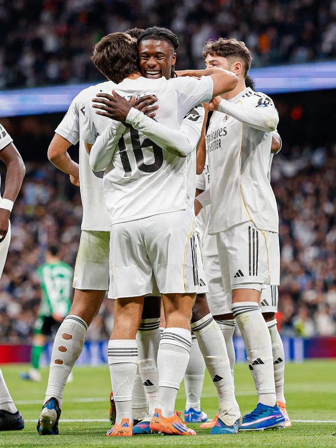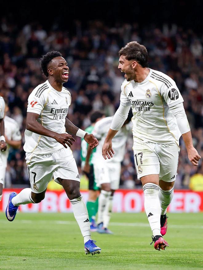 皇马球迷网ChinaReal 2025/26 2026.01.04/23:15 西甲/比赛日18 西班牙/马德里/伯纳乌球场 皇家马德里 5 皇家贝蒂斯 1 20' 1-0 贡萨洛 <罗德里戈< pan> 49' 2-0 贡萨洛 <巴尔韦德< pan> 55' 3-0 劳尔.阿森西奥 <罗德里戈< pan> 66' 3-1 库乔 <鲁伊瓦尔< pan> 81' 4-1 贡萨洛 <居莱尔< pan> 90'+3 5-1 弗兰.加西亚 <巴尔韦德< pan> X(@realmadrid) zhibo8 bilibili 皇家马德里/4-4-2 哈维.阿隆索 01 库尔图瓦 GK 08 巴尔韦德 C 17 劳尔.阿森西奥 18 卡雷拉斯 22 吕迪格 88' 05 贝林厄姆 06 卡马文加 11 罗德里戈 76' 14 琼阿梅尼 80' 07 维尼修斯 76' 16 贡萨洛 88' 76' 15 居莱尔 / 30 马斯坦托诺 80' 19 塞瓦略斯 88' 20 弗兰.加西亚 / 23 F.门迪 皇家贝蒂斯/4-2-3-1/佩莱格里尼 01 瓦尔莱斯 GK / 04 纳坦,05 巴尔特拉 C,12 R.罗德里格斯,40 奥尔蒂斯(45' 02 贝莱利) / 18 德奥萨(45' 20 洛塞尔索),21 罗卡(66' 06 阿尔蒂米拉) / 07 安东尼(88' 52 巴勃罗.加西亚),08 福纳尔斯,24 鲁伊瓦尔(66' 17 里克尔梅) / 19 库乔 佩莱格里尼曾任皇家马德里主教练 14' 贡萨洛点球点附近做球给到左路卡雷拉斯小角度推射被瓦尔莱斯神勇扑出,随后裁判吹罚越位在先。 20' 左路定位球机会罗德里戈开到禁区后点贡萨洛头球破门,1-0! 33' 安东尼禁区拿球被解围,弧顶德奥萨远射打偏了。 49' 巴尔韦德右路传中到弧顶,贡萨洛胸部停球后凌空抽射破门,2-0! 55' 罗德里戈右路角球开到禁区门前阿森西奥头球破门,3-0! 61' 贝蒂斯右路定位球机会,洛塞尔索直接传中到禁区打在立柱上弹出。 66' 库乔前场接鲁伊瓦尔直塞球推射破门,3-1。 75' 里克尔梅左路内切兜射打在远端立柱弹出。 81' 居莱尔左路禁区下底横传,门前贡萨洛脚后跟精巧破门完成帽子戏法!4-1! 87' 完成完美帽子戏法的贡萨洛被替换下场,全场球迷掌声致敬。 90'+3 巴尔韦德右路下底传到禁区后点,弗兰.加西亚凌空垫射破门,5-1! 比赛结束,皇家马德里在主场5-1大胜皇家贝蒂斯! 原文 / 比赛集锦 |
