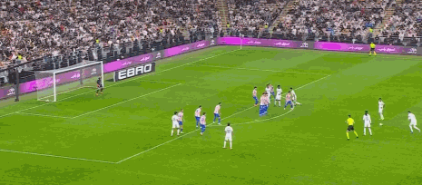 第2分钟,世界波!巴尔韦德任意球直接轰入死角,皇马1-0