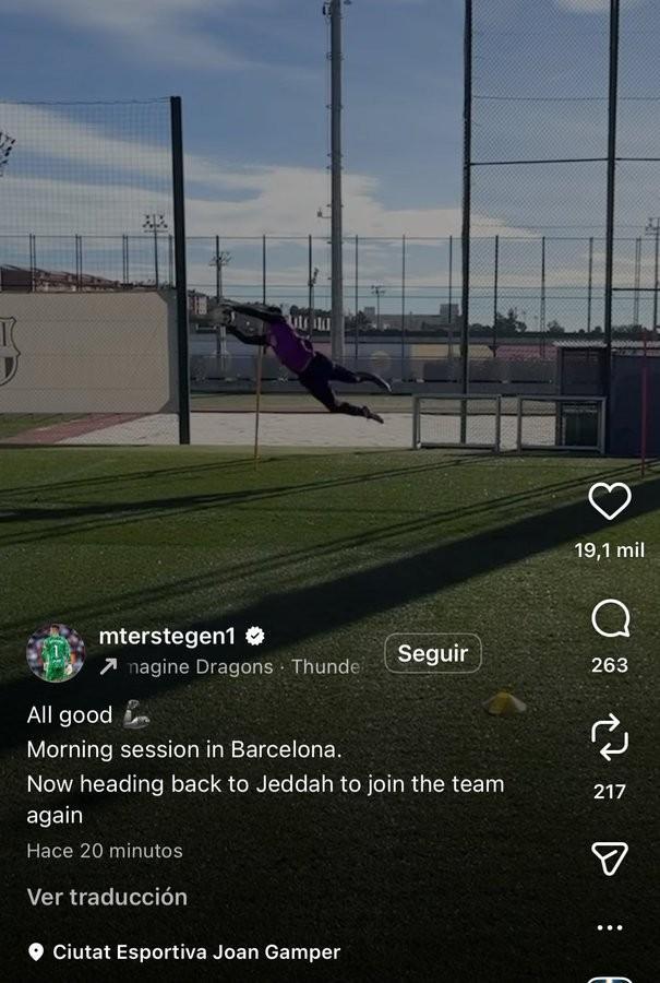 当地时间1月8日,特尔施特根在社交媒体上发表动态,宣布自己将返回吉达与球队会合,备战西班牙超级杯决赛。