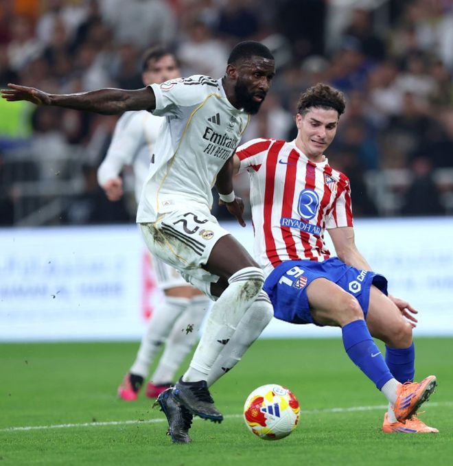 银河战舰皇家马德里赛季初一度靠着姆巴佩的强势发挥,力压卫冕冠军巴塞罗那,坐上了西甲第一的宝座,但是球队没有保持住连续拿分的势头,接连爆冷将联赛第一的宝座拱手相让,前十九场战罢,落后巴塞罗那4个积分排名第二。 这一个比赛日,皇马迎来了本赛季西班牙超级杯半决赛的考验,对阵同城死敌马德里竞技,本场比赛巴尔韦德1分16秒打入本世纪西超杯最快进球,下半场又助攻罗德里戈破门得分,帮助皇马2-1复仇马竞,昂首闯入到了本届西班牙超级杯的决赛。