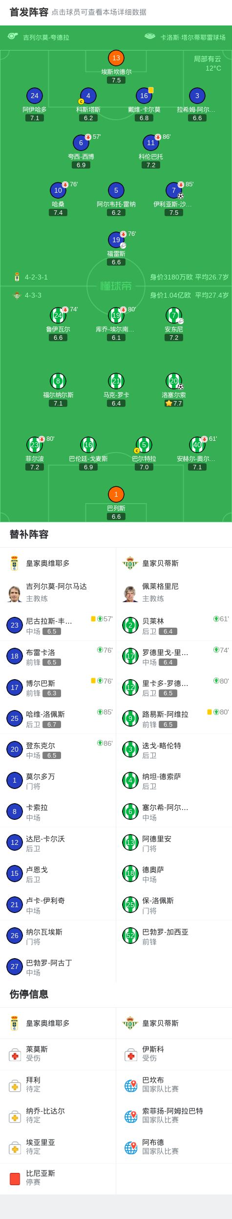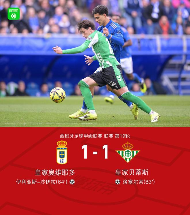 奥维耶多11贝蒂斯,沙伊拉贴地斩,安东尼助攻洛塞尔索扳平