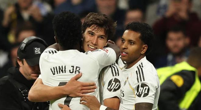 报道称,2026年的首场比赛中,姆巴佩因伤缺阵,皇马对阵贝蒂斯的比赛里,青训小将贡萨洛-加西亚堪当大任,用惊艳表现填补了法国人的空缺。这位本土前锋上演帽子戏法,用进球证明自己配得上更多出场时间。 他也借此机会为自己发声——此前球队在对阵巴列卡诺、埃尔切、赫罗纳和塞尔塔的关键比赛中丢分,从而让出联赛榜首位置,那段时间贡萨洛累计登场时间仅43分钟,本赛季至今他的出场时间也才刚突破400分钟。 出色的表现加上姆巴佩的伤缺,让贡萨洛顺理成章进入西超杯半决赛对阵马竞的首发名单,他与罗德里戈、维尼修斯组成锋线三叉戟。虽然受限于球队整体进攻状态不佳,贡萨洛在比赛中没能留下太多亮眼表现,但他全场跑动积极,高位逼抢毫不懈怠,这正是他一贯的比赛风格。 皇马最终顺利晋级决赛,贡萨洛本已锁定对阵巴萨的首发席位,但姆巴佩启程飞往利雅得的消息传来,法国球星将全力冲击决赛的出场机会。 在球队5-1大胜贝蒂斯后,阿隆索对贡萨洛赞不绝口:“我真的为他感到高兴,他在日常训练中一直非常努力,无论能否登场,他的态度都无可挑剔。他是皇马青训球员的绝佳榜样,他配得上这个机会。我希望他能继续保持这样的状态,只要球员足够努力,就会得到出场机会。教练的安排有赏有罚,能获得首发位置,就说明你的训练态度和竞技状态都达标了。” 阿隆索还特别称赞了贡萨洛的前场逼抢能力,这一点恰恰是姆巴佩和维尼修斯的短板:“如今全队都在强调高位逼抢,前锋线更是要承担起第一道防线的职责,在这方面贡萨洛的理解非常到位。”