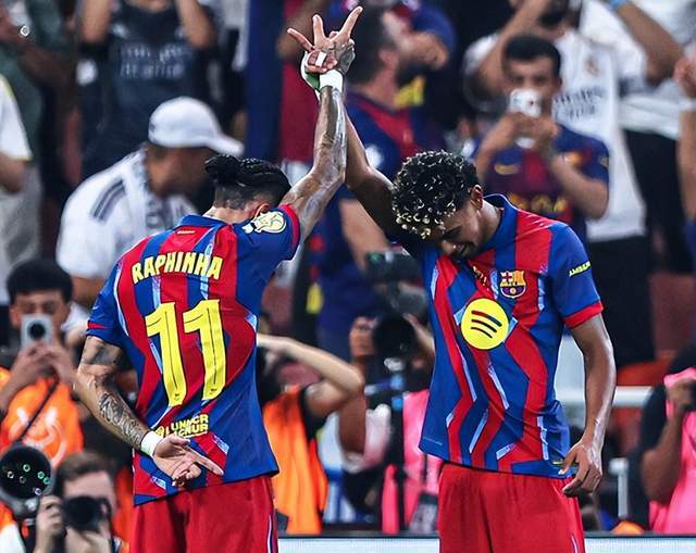 拉菲尼亚是巴萨的核心,这位巴西边锋也赢得对手的尊重。《世界体育报》透露,在皇马内部的很多场合,弗洛伦蒂诺都承认,他最喜欢的巴萨球员是拉菲尼亚,更胜过亚马尔、佩德里。除了弗洛伦蒂诺之外,马竞主帅西蒙尼也是拉菲尼亚的坚定支持者。在西蒙尼看来,拉菲尼亚配得上金球奖。 拉菲尼亚算是皇马克星,《世界体育报》给出数据:弗里克出任巴萨主帅至今,拉菲尼亚踢了5场国家德比,战绩是全胜,个人打进7球。去年1月的西超杯决赛,巴萨5-2横扫皇马,拉菲尼亚梅开二度;2024-25赛季西甲,巴萨4-0、4-3双杀皇马,拉菲尼亚2场打进3球。