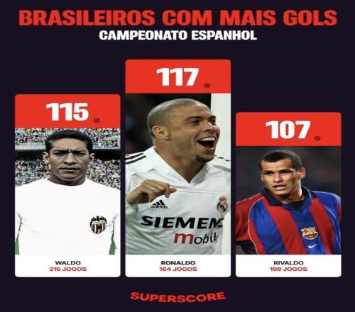 西甲进球最多的巴西球员瓦尔多 | Waldo Machado 进球:115 出场:215 场均进球:0.53 西甲效力俱乐部:瓦伦西亚、埃库莱斯 罗纳尔多 | Ronaldo Luís Nazário de Lima 进球:117 出场:164 场均进球:0.71 西甲效力俱乐部:巴塞罗那、皇家马德里