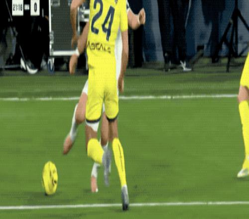 第62分钟,比利亚雷亚尔的任意球设计巧妙,莫雷诺身边无人,居然将球打高,黄潜自家球迷都摊手表达不满。