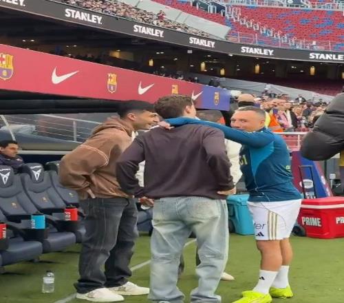 41岁的卡索拉目前效力于皇家奥维耶多,本场替补待命,赛前他也与巴萨球员佩德里、加维、费兰等热络聊天。
