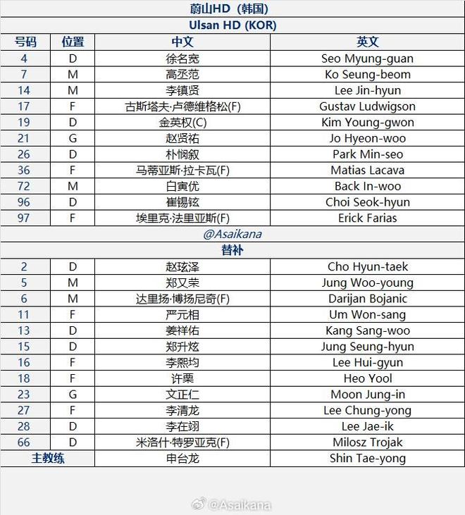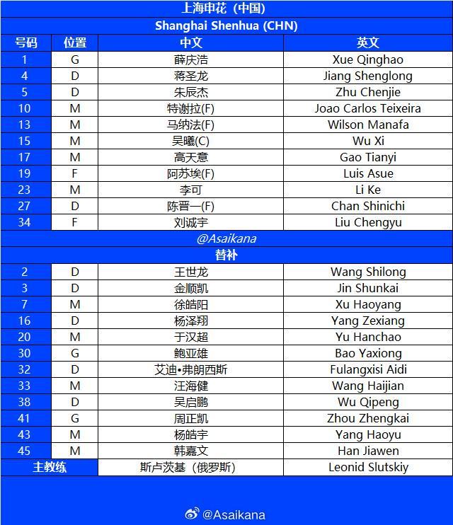 北京时间10月1日20:15,亚冠精英联赛第二轮,上海申花坐镇主场迎战蔚山HD,本场比赛主裁判是日本裁判荒木友辅,VAR是日本裁判饭田淳平,赛前双方公布首发: