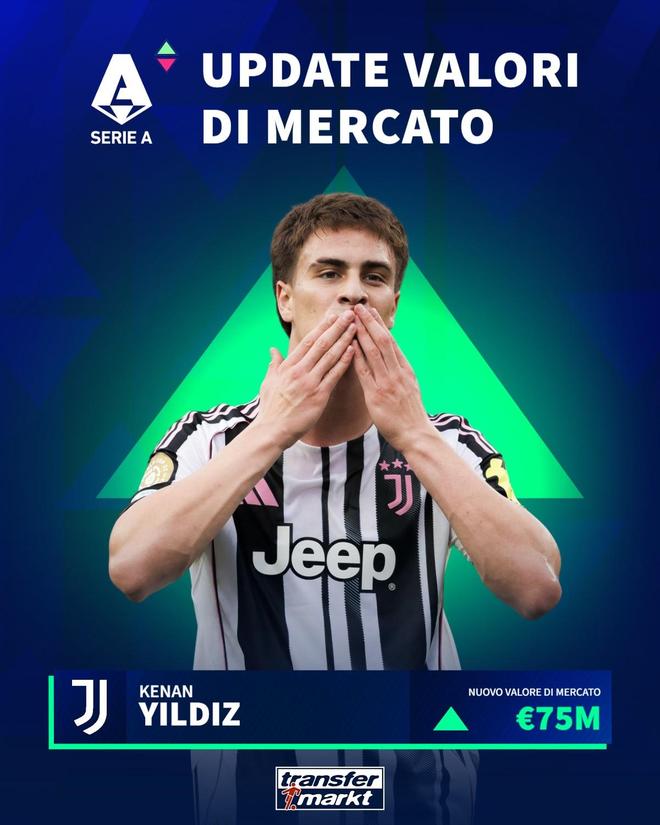10月7日,德国转会市场网站更新了意甲球员身价,尤文前锋伊尔迪兹身价暴涨2500万欧,达到7500万欧,德转对此进行了解释。 德转意大利区负责人表示:“在过去几个月里,他在个人成长方面又迈出了重要一步——他在世俱杯上表现出色,并且在本赛季开局阶段延续了强势状态。年仅20岁的他已经成为尤文图斯的核心球员。他最大的优势在于出色的技术、在进攻三区的创造力,以及令人惊讶的控球成熟度,同时他在关键时刻敢于承担责任,展现出非凡的自信。” 考虑到这些因素,伊尔迪兹的身价上涨50%,从5000万欧元升至7500万欧元,这不仅合情合理,也实至名归,使他跻身意甲身价最高球员的前三名之列。 |